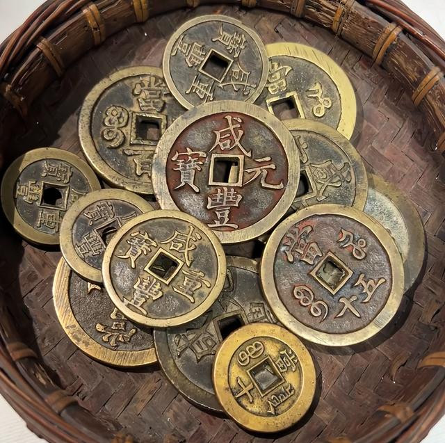 咸丰通宝/咸丰重宝等:清朝咸丰年间,由于内忧外患,财政紧张,政府为了筹集资金,大量铸造钱币。在当时的社会环境下广泛流通,版别丰富,铸造量较大。